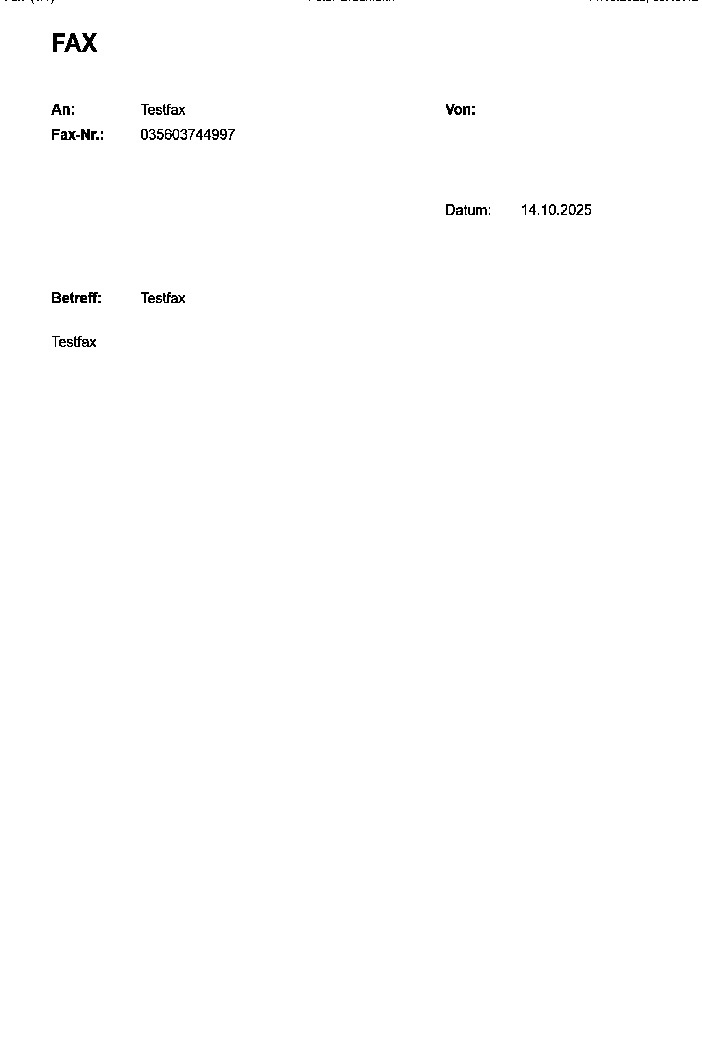 Je nach Einstellung Ihres Faxgerätes werden unterschiedliche Daten auf das Fax gedruckt und beim Empfänger angezeigt. Prüfen Sie hier Ihre Darstelung der Faxnachricht!