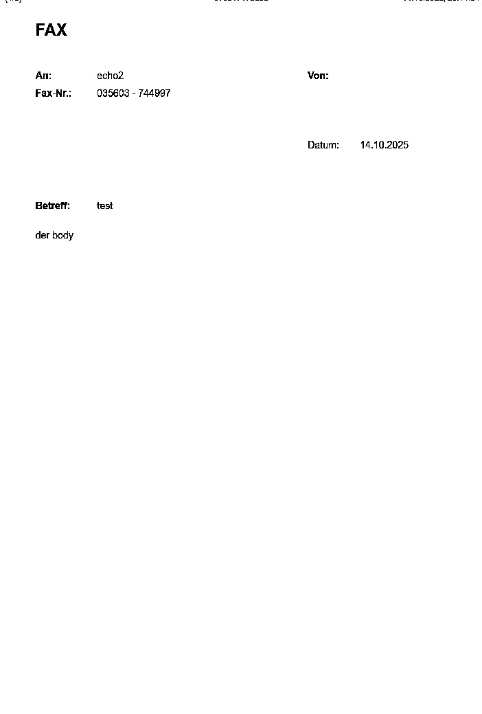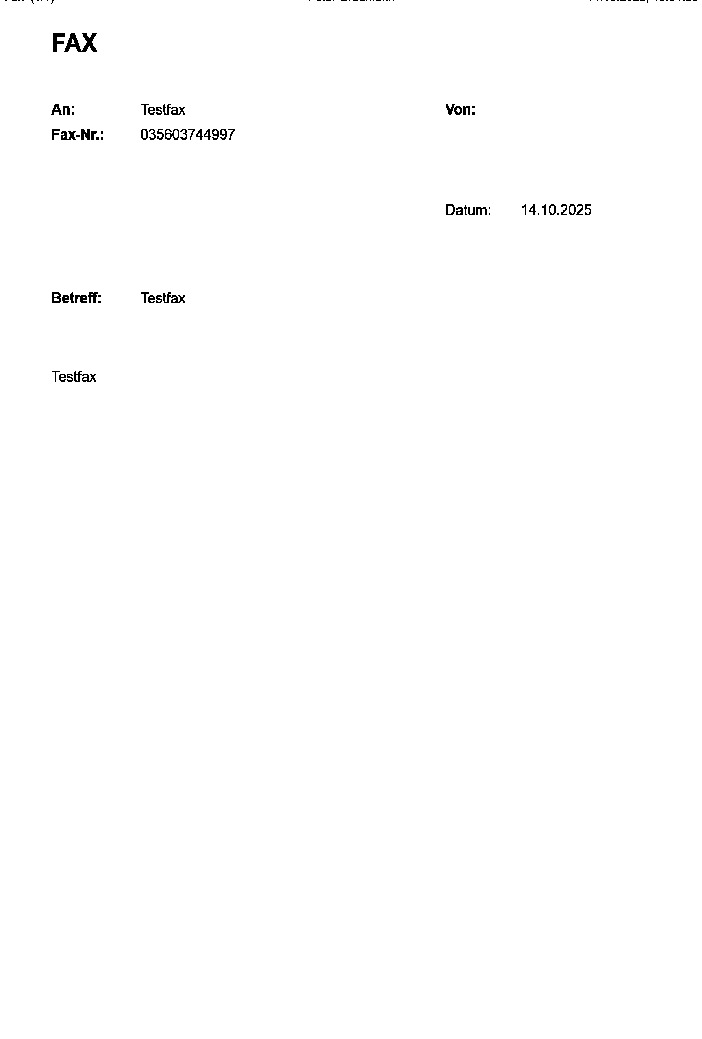Je nach Einstellung Ihres Faxgerätes werden unterschiedliche Daten auf das Fax gedruckt und beim Empfänger angezeigt. Prüfen Sie hier Ihre Darstelung der Faxnachricht!